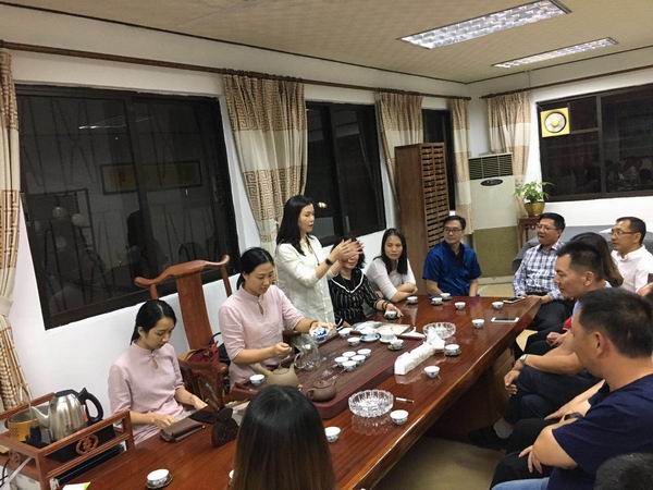 10月26日晚,东莞市茶促会茶山分会主办的首届品茗书画鉴赏会在茶叶市场办公楼二楼举行。活动除了市茶促会以及茶山茶促会各理事会员及社会上的爱茶人士积极参与外,茶山当地的书画界爱好者也来到现场挥毫赠庆。大家在高雅和谐的气氛下赏画品茶,谈笑风生。